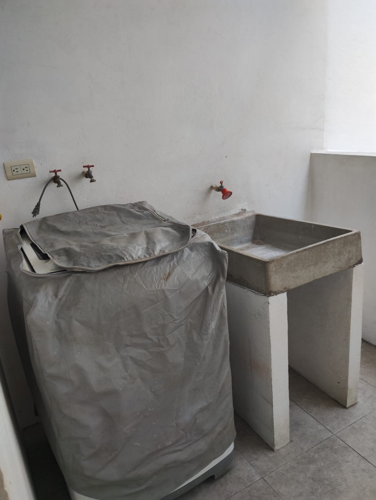 -Área de lavado techada, calentador y lavadora